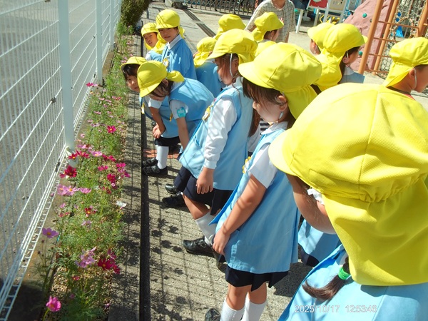 子ども達が植えたコスモス綺麗に咲いたね♡