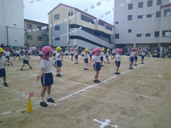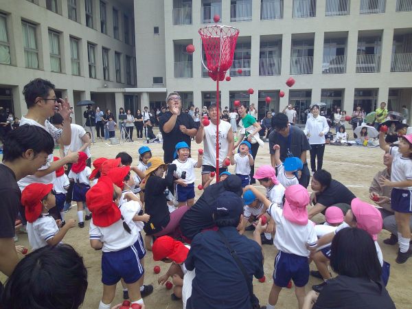 桃・赤組親子競技「ハイビスカスでハイポーズ!」