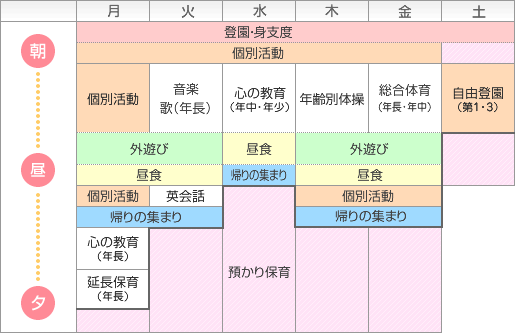 子どもの個性を尊重しながら、その子の能力を引き出し、心と身体の健全な発達と豊かな人格形成を目的としています。